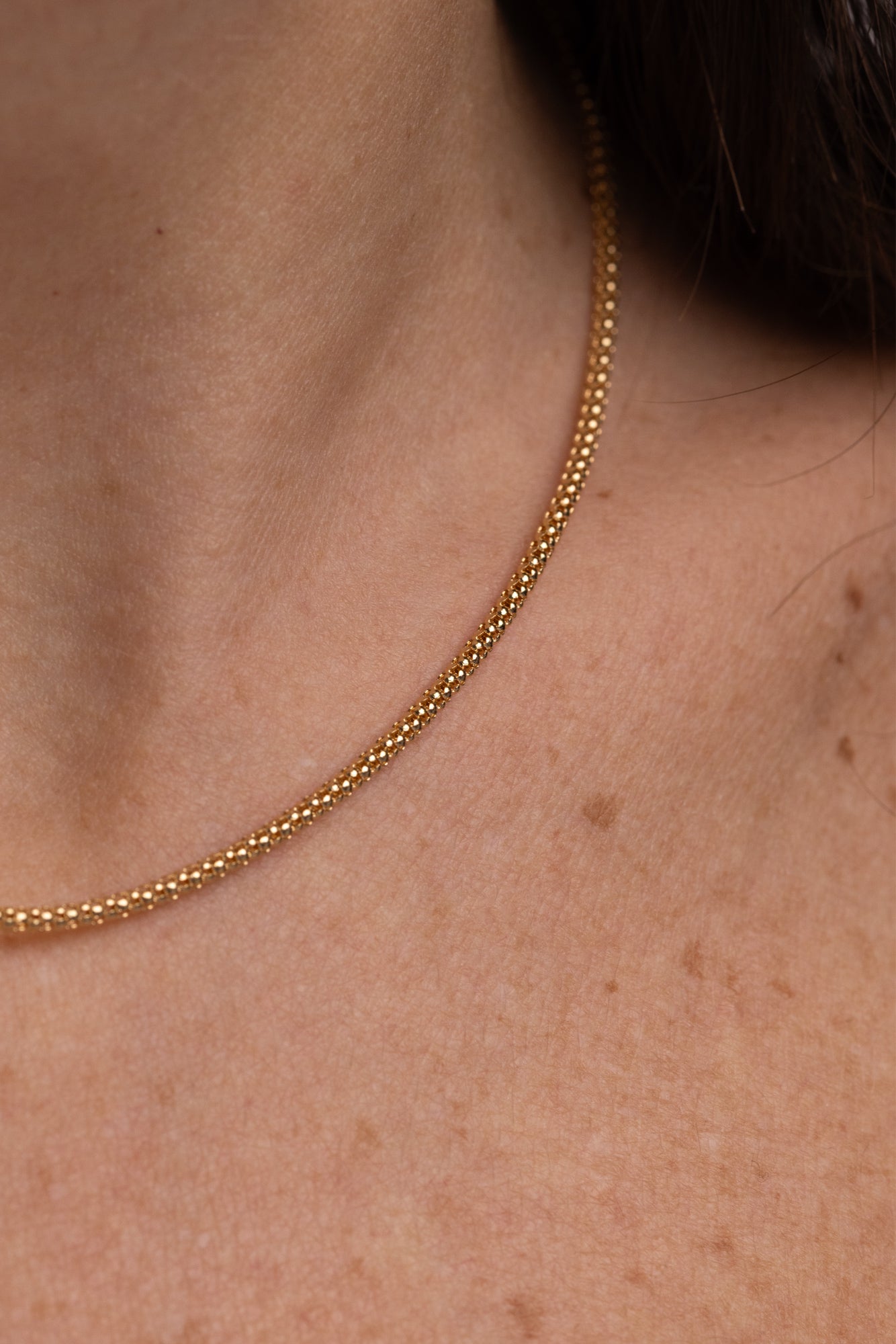 Questa collana ti conferirà sempre “quel tocco in più”, la sua maglia d’oro è un intreccio inusuale di rotondità.