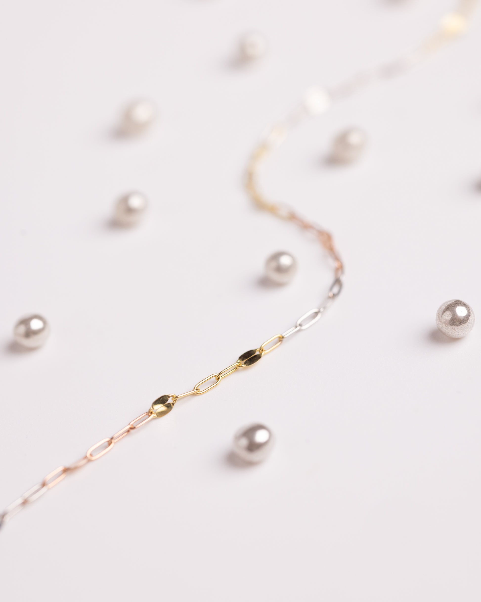 Prisma è perfetta su ogni incarnato, la sua maglia contiene tre colori diversi di oro: oro giallo, oro rosa, oro bianco. Versatile e unica nel suo genere.